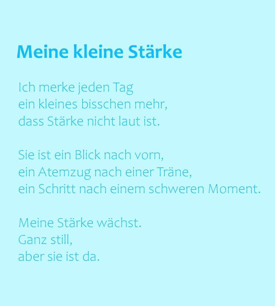Sofies Papa unterstützte sie im Schreibprozess und stellt selbst ein paar Worte an den Anfang der Sammlung, die wir gerne zitieren möchten: „Sofies Gedichte berühren, weil sie wahr sind. Sie trösten, weil sie aus Liebe kommen. Und sie schenken Mut, weil sie zeigen: Auch aus Schmerz kann etwas Wunderschönes entstehen.“