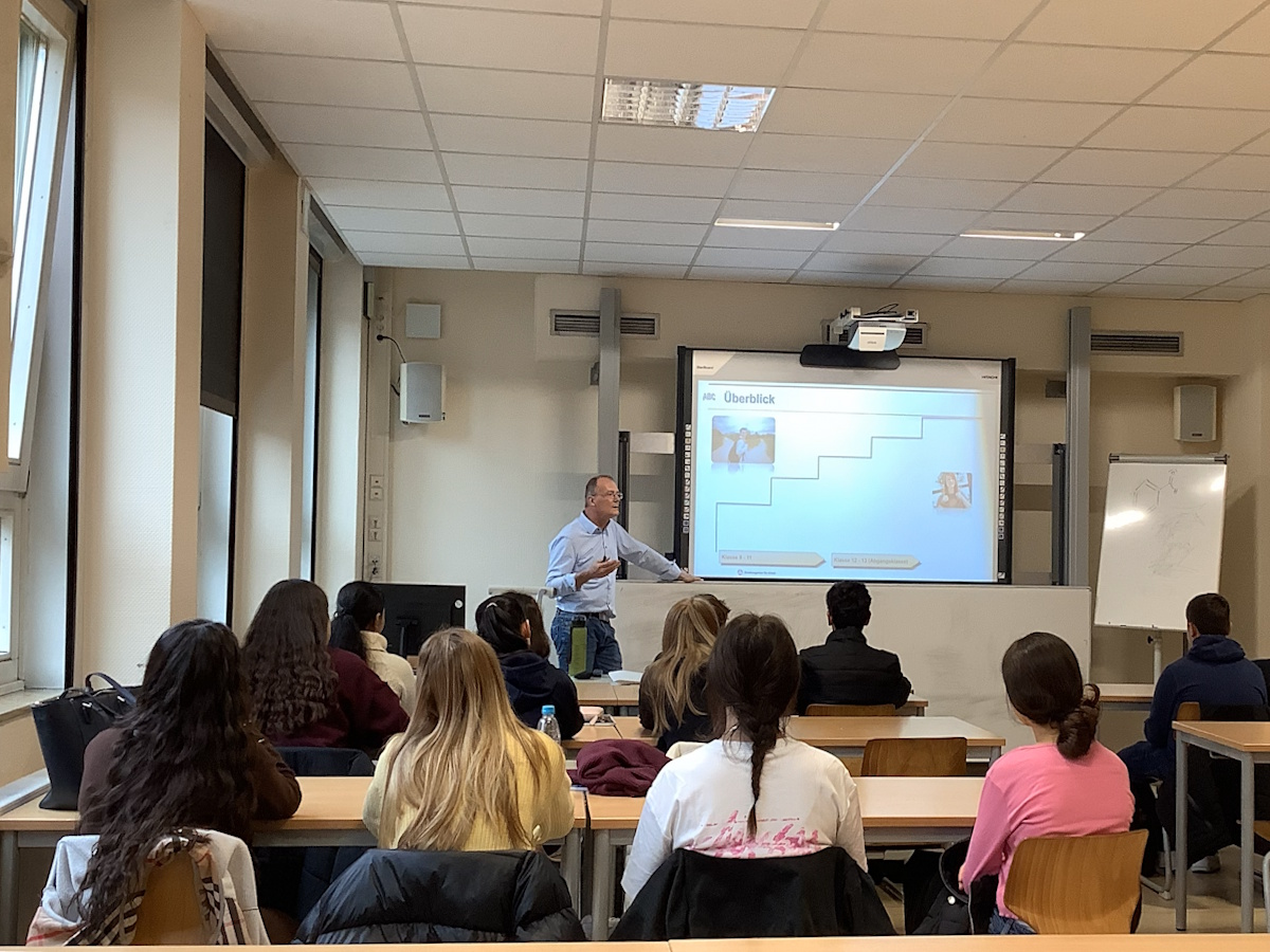 „Sie waren doch schon mal da!“ begrüßte eine Zehntklässerlerin Herrn Kinzel von der Agentur für Arbeit. Recht hat sie! Herr Kinzel ist regelmäßiger und gern gesehener Gast am THG: Sobald es um Beruf und Zukunft geht, ist er unser Experte und informiert, berät und unterstützt Schüler*innen ab Klasse 9 bei allen Themen, die mit Berufsorientierung zu tun haben. Am 20. Oktober 2025 leitete er zwei Workshops zum Thema Bewerbung in Klasse 10, zwei Tage später wird er schon wieder gebraucht, dann wird er einen Elternabend zur Berufsorientierung durchführen, so dass auch die Eltern unserer 10. Klassen alles wissen, was u.a. mit dem BOGY auf ihre Kinder zukommt.