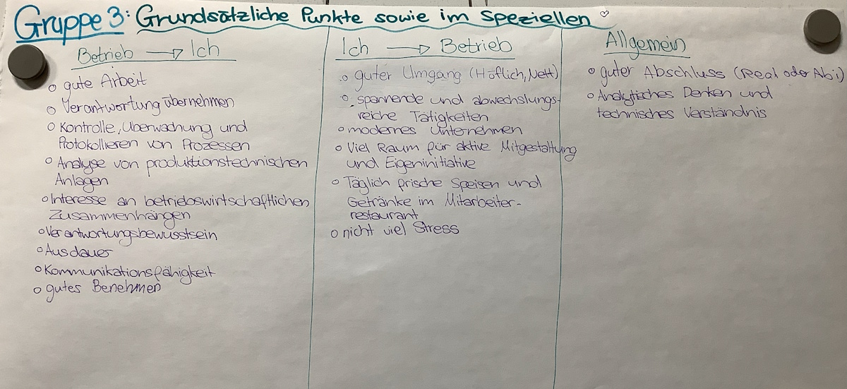 Nach einem kurzen Infoblock ging es direkt in eine Gruppenarbeitsphase. In Kleingruppen beschäftigten sich die Jugendlichen mit dem zeitlichen Ablauf im Vorfeld des BOGY–Praktikums, was alles zu einer gelungenen Bewerbung gehört - und was nicht: „Rechtschreibfehler gehen gar nicht!“ -, diskutierten aber auch was sie von einem Betrieb erwarten und welche Rolle KI bei einer Bewerbung spielen kann und darf. Die anschließenden Präsentationen wurden von Herrn Kinzel ergänzt, er lobte die vielen guten Ideen der Schülerinnen und Schüler und gab wertvolle Tipps, wie man im Bewerbungsgespräch überzeugen kann: „Denkt vom Betrieb her! Was hat der Betrieb von den Fähigkeiten, die ihr mitbringt? Das ist das Geheimnis!“