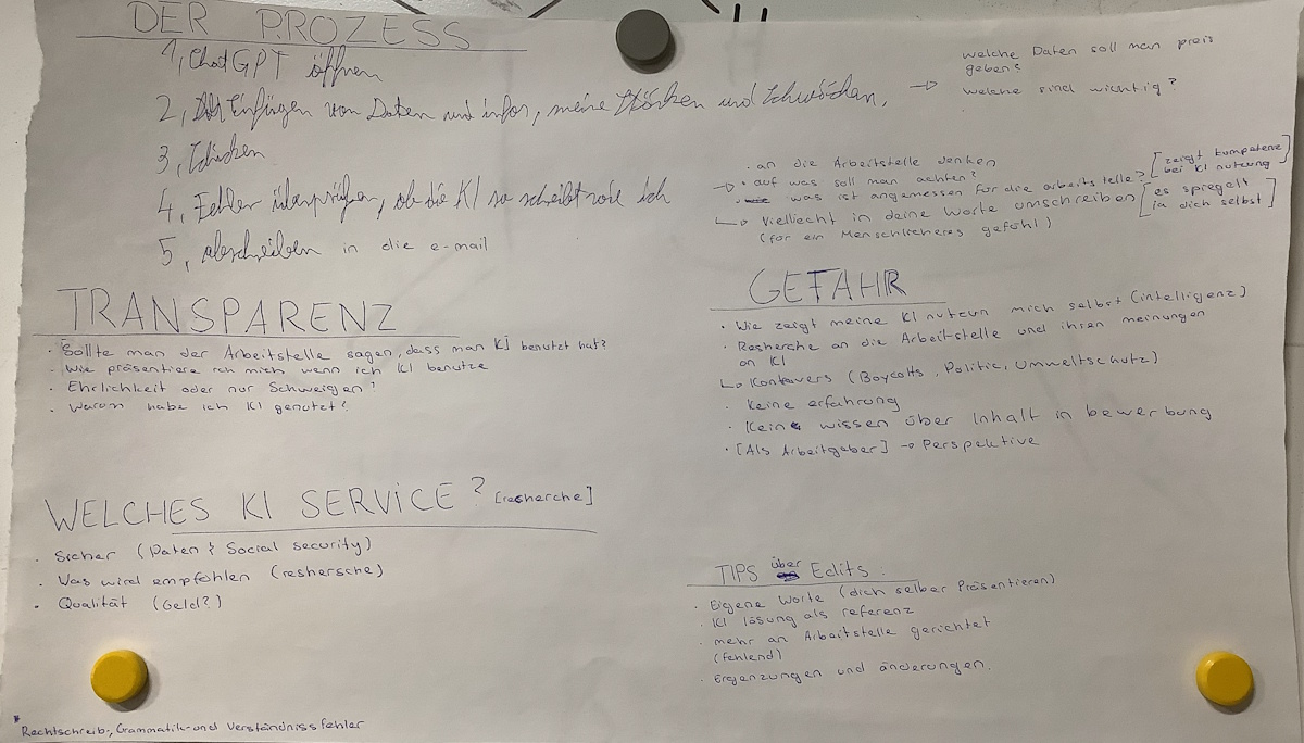 Abschließend zeigte er Beispiele von Lebensläufen und Anschreiben, zu denen sich die Klasse kritisch äußern sowie eigene Ideen und Vorstellungen einbringen konnte. Einige Betriebe erwarten gar kein klassisches Anschreiben mehr, sondern wünschen sich wie BMW stattdessen Bewerbungsvideos.