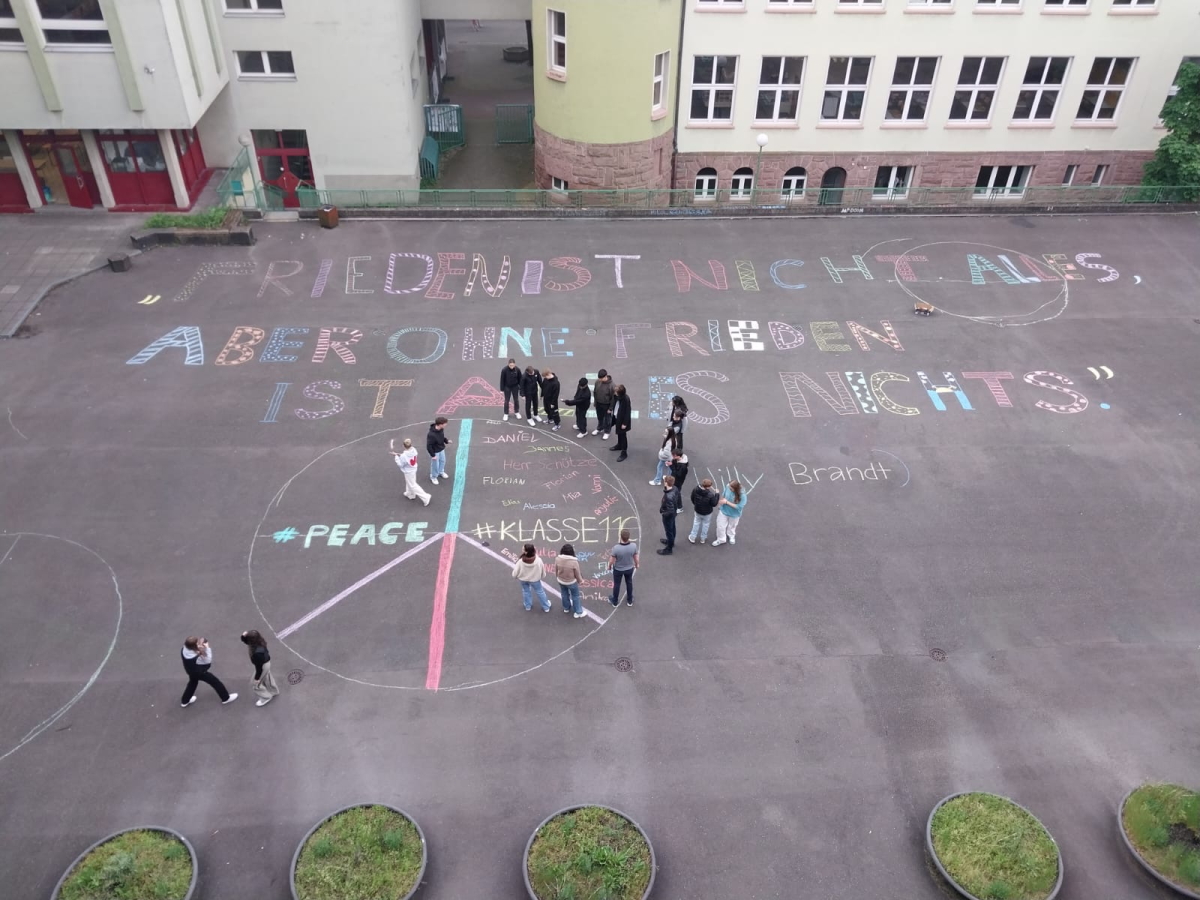 Anlässlich des 79. Jahrestages der Beendigung des Krieges in Europa und der nationalsozialistischen Gewaltherrschaft will die Klasse 11c mit dem Zitat Willy Brandts die Relevanz des Friedens hervorheben.