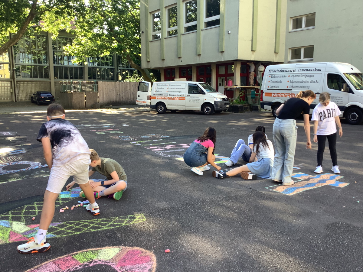 Ein großes Dankeschön an die Klasse 7b für dieses gelungene Werk, das unseren grauen Schulhof in einen bunten Aufruf verwandelt hat!