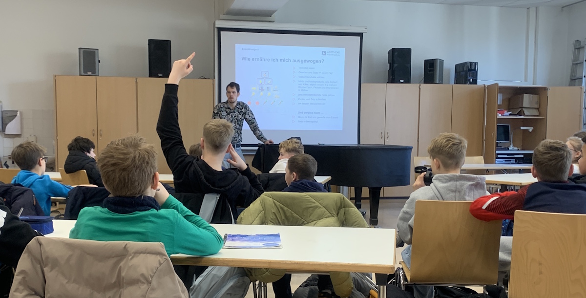 Im Rahmen des Präventionsangebots am THG lauschten die Schülerinnen und Schüler der Klassenstufe 7 zunächst gespannt einem Vortrag rund um eine ausgewogene Ernährung, sowie über unterschiedliche Arten von Essstörungen.