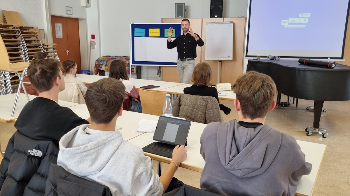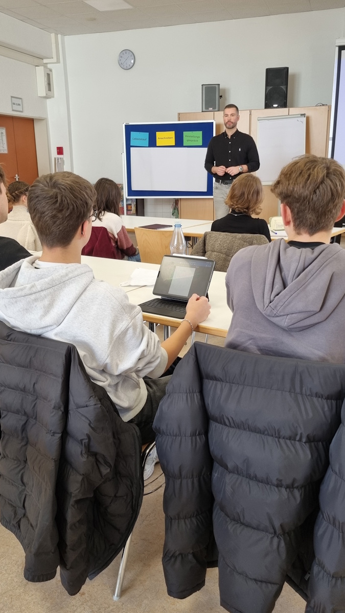 Für die Kursstufe ging es im November weiter: Mihael Mustač, professioneller Bewerbungscoach von Rhetorican, führte interessierte Schüler:innen aus den Klassenstufen 12 und 13 bereits zum zweiten Mal durch ein praxisnahes Training. Auch er verwies auf den Blick nach innen.